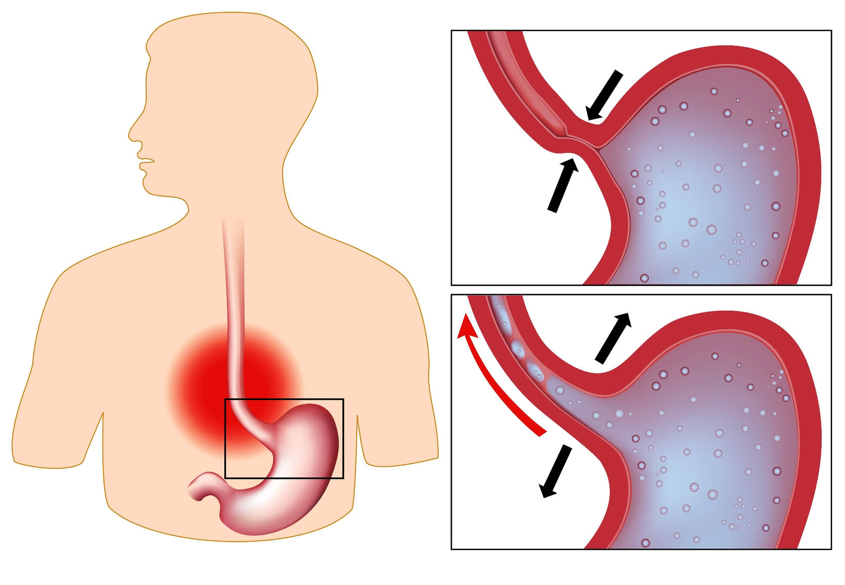Οι πιθανές αιτίες της εοσινοφιλικής οισοφαγίτιδας περιλαμβάνουν τις αλλεργίες σε τρόφιμα, περιβαλλοντικούς παράγοντες, και γενετικούς παράγοντες. Οι συμπτώματα μπορεί να περιλαμβάνουν δυσκοιλιότητα, πόνο στο στήθος, δυσφαγία (δυσκοιλιότητα) και απώλεια βάρους, ιδίως σε παιδιά.